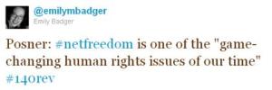 5. I end with this statement from Assistant Secretary of State for the Bureau of Democracy, Human Rights, and Labor, Michael Posner because it ties together all the prior insights. First, it’s an example of what MacKinnon spoke about regarding the two-faced nature of U.S. policy—both in how the US government takes a firm stance in its position that other countries should respect the internet access rights of its citizens, while domestically, private interests and legislation are working to limit freedom of speech on the internet. When can America’s policy on internet freedom abroad be adopted domestically?