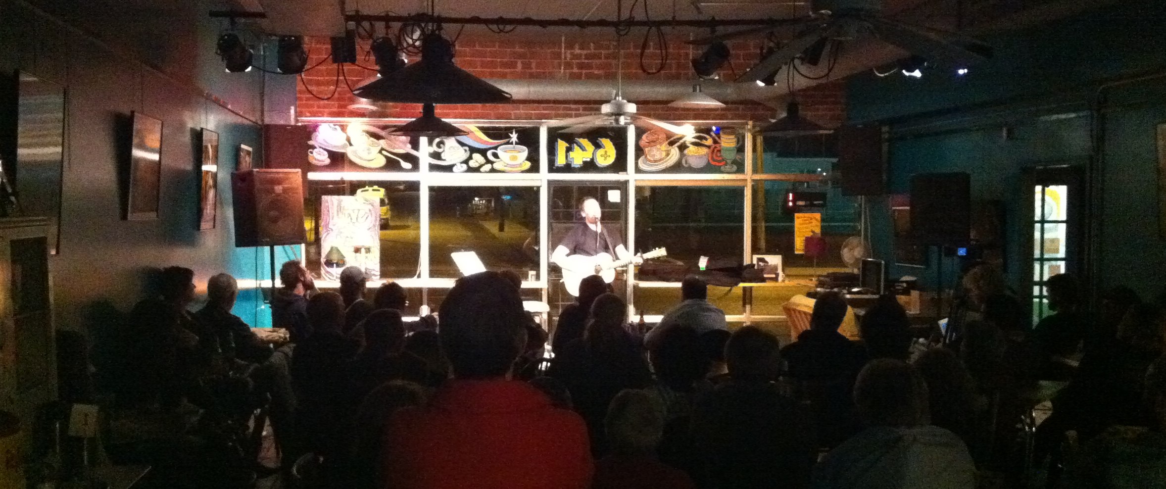 After arriving in Memphis on Thursday afternoon, I spent the evening hanging out at the Otherland Coffee Bar with some of the other conference attendees to watch David Rovics. It was a good time, with good food (one of the best veggie burgers I’ve had), good coffee, and good music. Check out some of the short recordings (AudioBoos) I made during his performance.