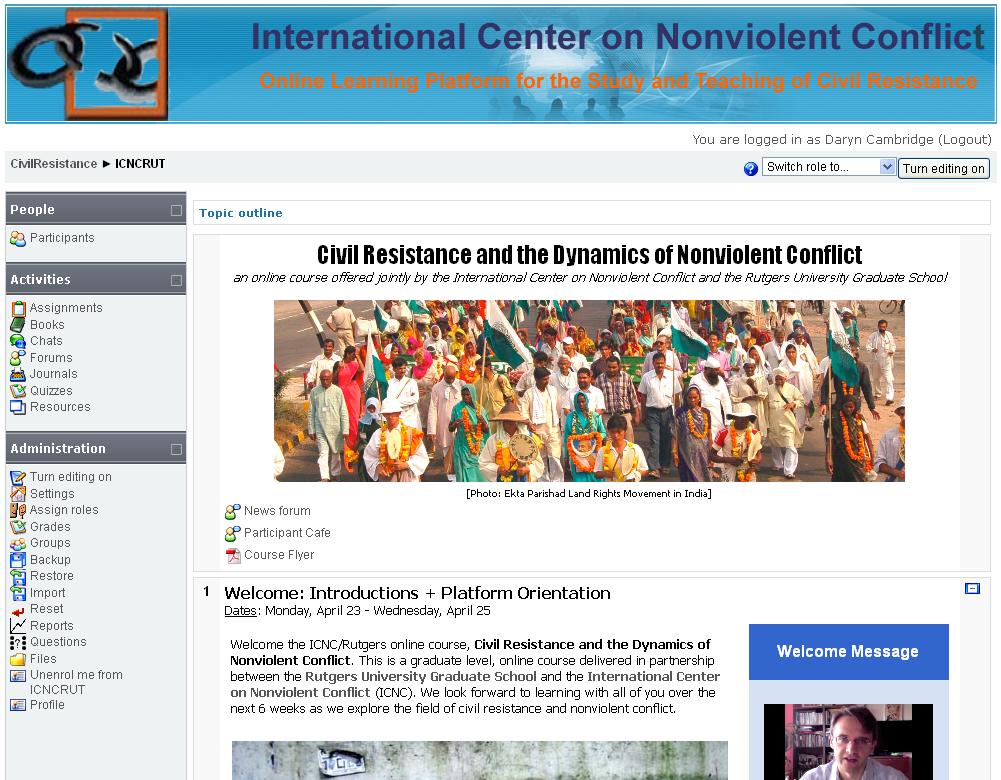 From April 23rd to June 5th, ICNC partnered with Rutgers University to deliver a 6 week online course on civil resistance and the dynamics of nonviolent conflict. I was the primary designer of the course, having structured it off a similar layout I used for the online course ICNC did with USIP the previous year. I was also a co-facilitator of the course with my colleague Maciej Bartkowski. There were 22 participants in the course from all over the world. The partnership was encouraged and supported by one of ICNC’s academic advisors, Dr. Kurt Shock, who is an Associate Professor of Sociology and Global Affairs.
