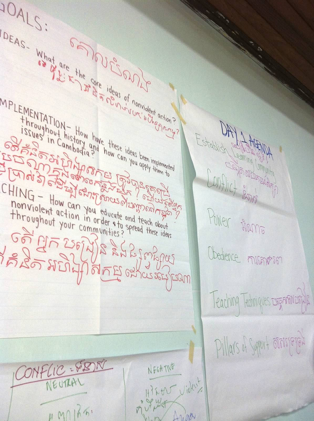 This was an amazing experience for a number of reasons. First, this was my first time in Cambodia so I was constantly soaking up the history, culture, and environment while I was there. Second, the process of designing and facilitating a workshop on nonviolent action for learners whose mother tongue is Khmer – a language very different from English – posed some challenges that helped me and Althea think in new ways about how to talk and teach about the topic. And third, it was an opportunity that brought me into contact with so many amazing people who are organizing around a myriad of issues.