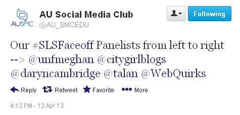 This past Friday I was a panelist for the “Faculty Face Off” session at American University’s Social Learning Summit – a 2.5 day conference organized by AU’s Social Media Club that looks at the current and emerging role, trends, and a techniques of using social media tools in learning and education. I was joined by moderator Meghan Foster, and panelists Scott Talan, Jim Quirk, and Stef Woods. In the spirit of the summit, my reflection on the experience will be organized by tweets that members of the audience shared during the discussion.
