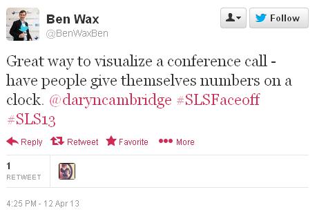 I found this facilitation technique to be very effective and has given me a whole new appreciation for conference calls, which up until that point were something I tended to dread because they were never facilitated effectively. Now I have this skill, have since facilitated it myself during another online course, and see conference calls as a good way to connect students who taking courses online but could still benefit from hearing each others’ voices. Conference calls are also, oddly enough, considered relatively “low-tech” now that there are all sorts of webinar and video conferencing services available. The only problem with those is that they require a certain level of bandwidth, computer equipment (video cam, microphone, etc.) and oftentimes always involve some type of trouble shooting in order to work correctly. Phones, however, are almost ubiquitous these days or at least easily accessible, especially throughout North America, and so its easy to incorporate that tech into an online/virtual learning experience.