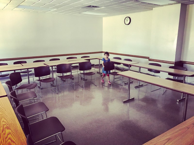 Kaiya helping me set up the chairs.