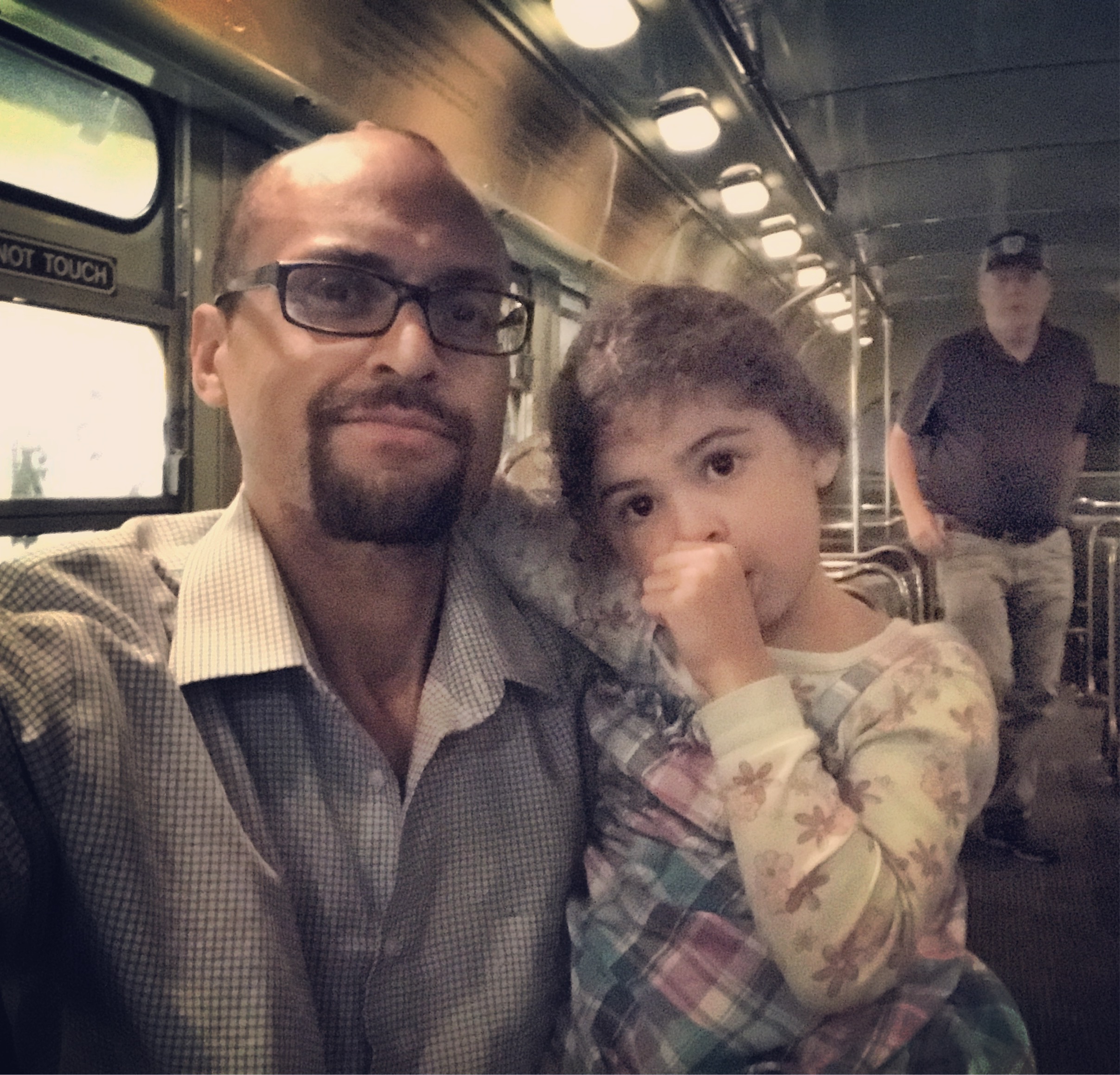Sitting in a replica of the segregated public bus from Montgomery Alabama.